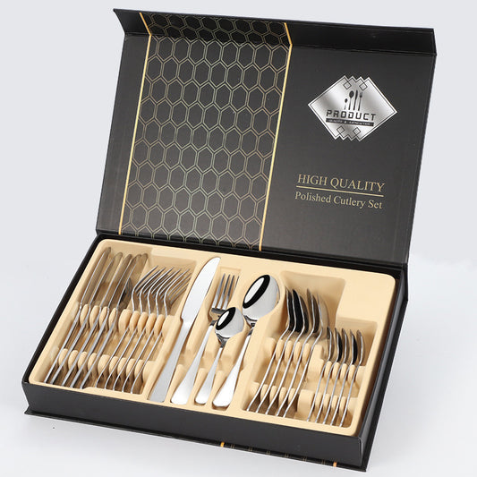 AHORRA $15.010Juego de Cubiertos de 24 Piezas Plateado de Acero Inoxidable