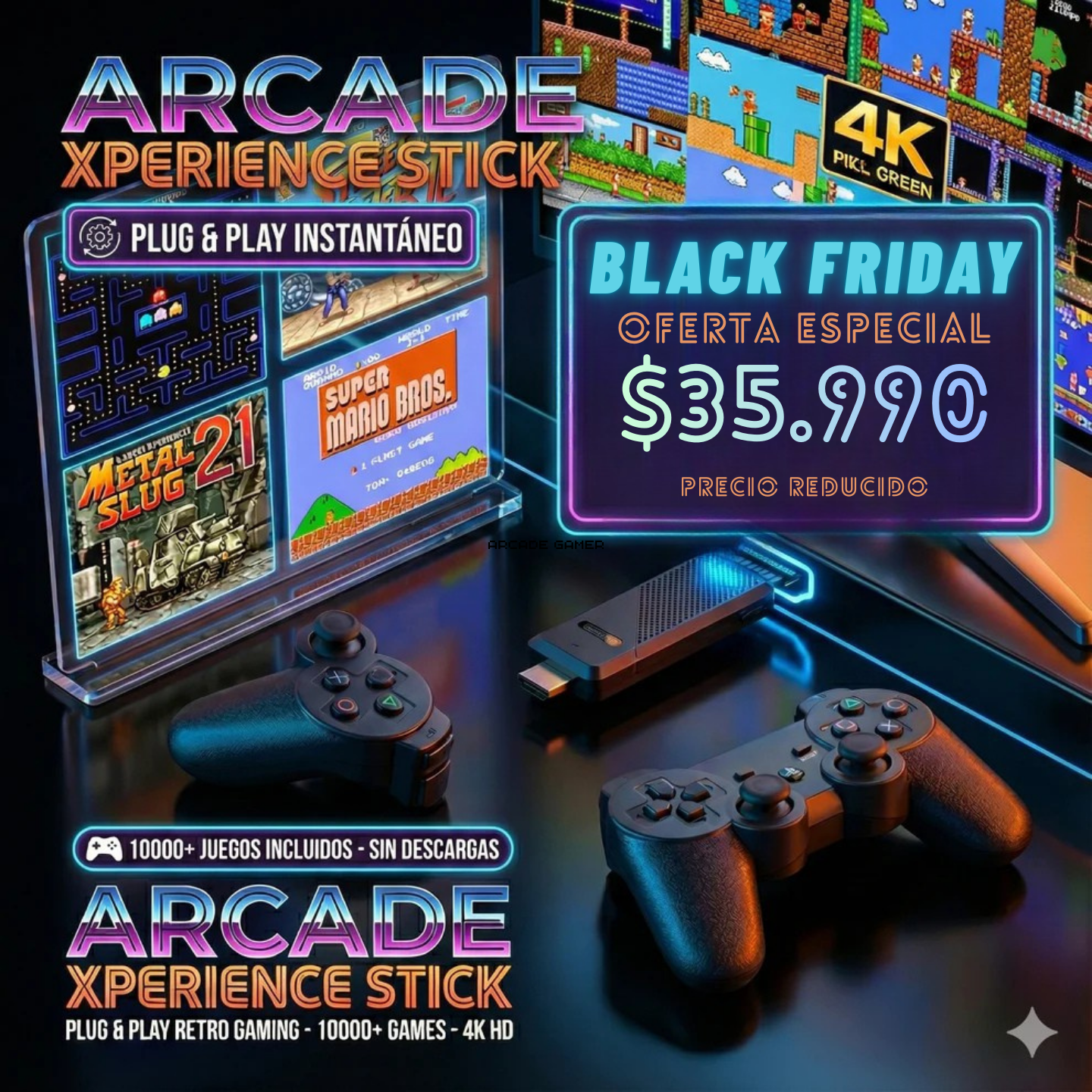 🔌 Cero complicaciones: Sistema Plug & Play. Conectar al HDMI y empezar a jugar en 10 segundos.